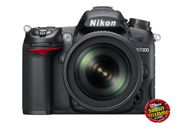 Nikon D7000 on kaksi vuotta vanhan Nikon D90:n seuraaja ja korvaa sen luokassa, jota kutsutaan nimellä consumer segment eli kuluttajatuotteet. Yhtä ylemmässä luokassa Nikonilla on hieman suurempi ja painavampi D300S-malli. Se on myös kalliimpi kuin D7000. Ostotilanteessa kannattaakin miettiä omia tarpeita kaikessa rauhassa. Aloitetaan vaikka tarkkuudesta. D7000:lla saa 16,1 miljoonan pikselin kuvia, jotka siis ovat lähes 40 % suurempia kuin kalliimman mallin. Halvemmalla kameralla saa Full HD -videota 1920 x 1080 pikselin tarkkuudella, kun taas D300S:lla videon tarkkuus on vain 1280 x 720 pikseliä. D7000:n ISO-alue yltää kahden aukon verran korkeammalle. D300S-mallissa voi käyttää samaan aikaan CF- ja SD-kortteja, mutta D7000:ssa voi käyttää kahta SD-korttia. Kahden samanlaisen kortin käyttö on yleensä kätevämpää. D300S on seitsemän kuvan sekuntinopeudella nopeampi, mutta D7000 pääsee lähelle kuuden kuvan sekuntinopeudella. Sen lcd-näyttö on tarkempi ja kamerassa on useampia tarkennuspisteitä. Sulkimen on testattu kestävän 150 000 kuvaa. Nämä ominaisuudet ovat hyviä, mutta mitä halvemmasta kamerasta on jätetty pois? Kumpikin kamera on tiivistetty pölyä ja kosteutta vastaan ja kumpaankin saa erillisen paristokahvan. Kummankin runko on kevytmetallia. Kummankin tähtäin näyttää 100 % kuvaan tulevasta alueesta. Suuremmasta D300S:sta saa hieman paremman kuvausotteen, mutta painikkeet ja säätimet ovat käyttäjälle luonnollisemmissa paikoissa D7000:ssa. Lyhyesti sanottuna D7000 on parempi kuin päältä luulisi. Arvosana: 91%