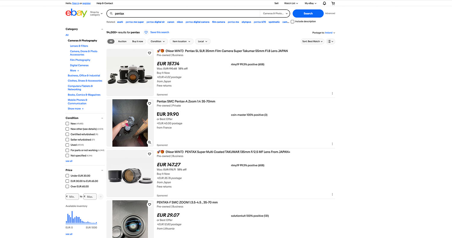 Analogisia kameroita myyvät esim. eBay, Tradera, Auctionet, Huuto.net, Tori.fi, Etsy jne. Osa on myynti-ilmoituksia, osa nettihuutokauppoja. Sivustoihin ja sovelluksiin saa yleensä laitettua vahdin, joka ilmoittaa, kun sopivaa tavaraa tulee tarjolle.