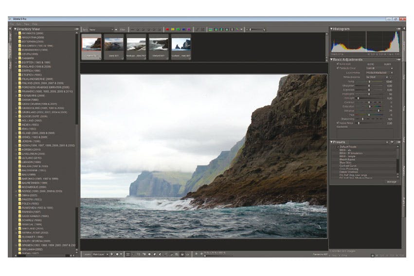 Sen käynnistymisaika onkin testin lyhyin, ja 50 kuvan vienti sujuu rivakasti. Näiltä osin suorituskyky on erinomainen. Aikaa säästyy myös siinä, että Bibblellä voi tehdä kuvatietokantaan useita kirjastoja. Ensi silmäyksellä Bibbleä voisi luulla Lightroomin halvemmaksi versioksi, mutta ohjelman käyttöliittymä kaikkine paletteineen ja painikkeineen on sekavampi. Vaativista tehtävistä, kuten kohinanpoistosta, Bibble selviytyy kuitenkin lähes yhtä hyvin kuin Lightroom. Arvosana: 86%