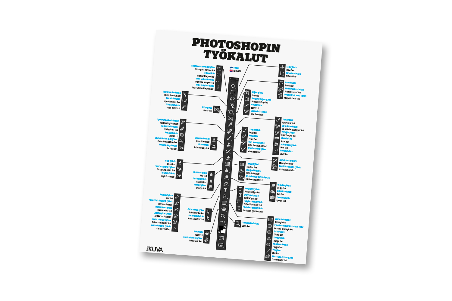 Tässä on muistilista ohjelman työkaluista ja niiden nimistä suomeksi ja englanniksi. Lista on pdf-muodossa, joten voit tulostaa sen.