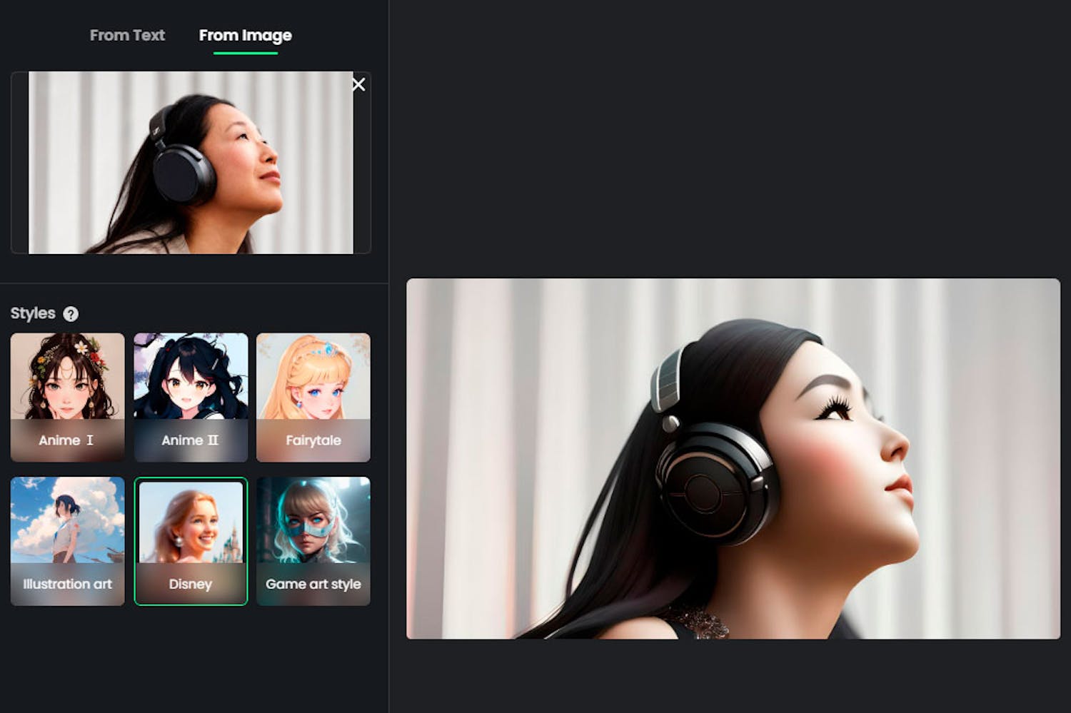 Lataa oma kuvasi palveluun ja tekoäly muuttaa sen eri tyylisiksi grafiikoiksi.