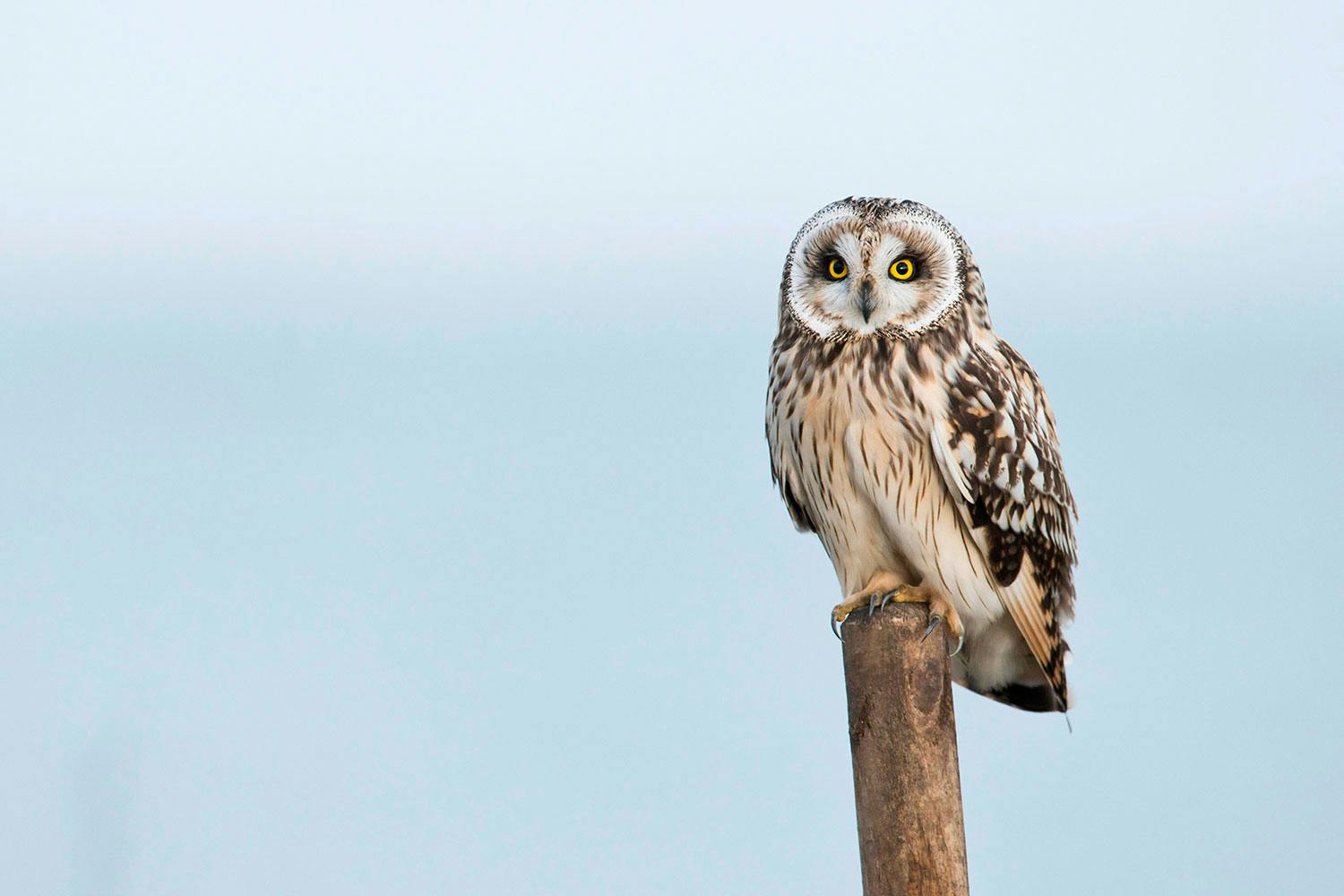 Myös pöllöjä on helpompi päästä lähelle talvisin. Lehdettömät puut parantavat näkyvyyttä, ja pöllöt ovat aktiivisia suuremman osan vuorokaudesta, kun pimeää eli useimpien pöllöjen metsästysaikaa on enemmän. Talvella voi siksi nähdä yöllä metsästäviä pöllöjä jo iltapäivästä alkaen. Kuvan suopöllö on valitettavasti jo ehtinyt muuttaa pois, mutta esimerkiksi myös varpuspöllö on aktiivinen päiväsaikaan. Se ilmestyy syyskuusta alkaen asutuksen piiriin, missä sen voi nähdä ruokintapaikkojen lähettyvillä saalistamassa pikkulintuja.