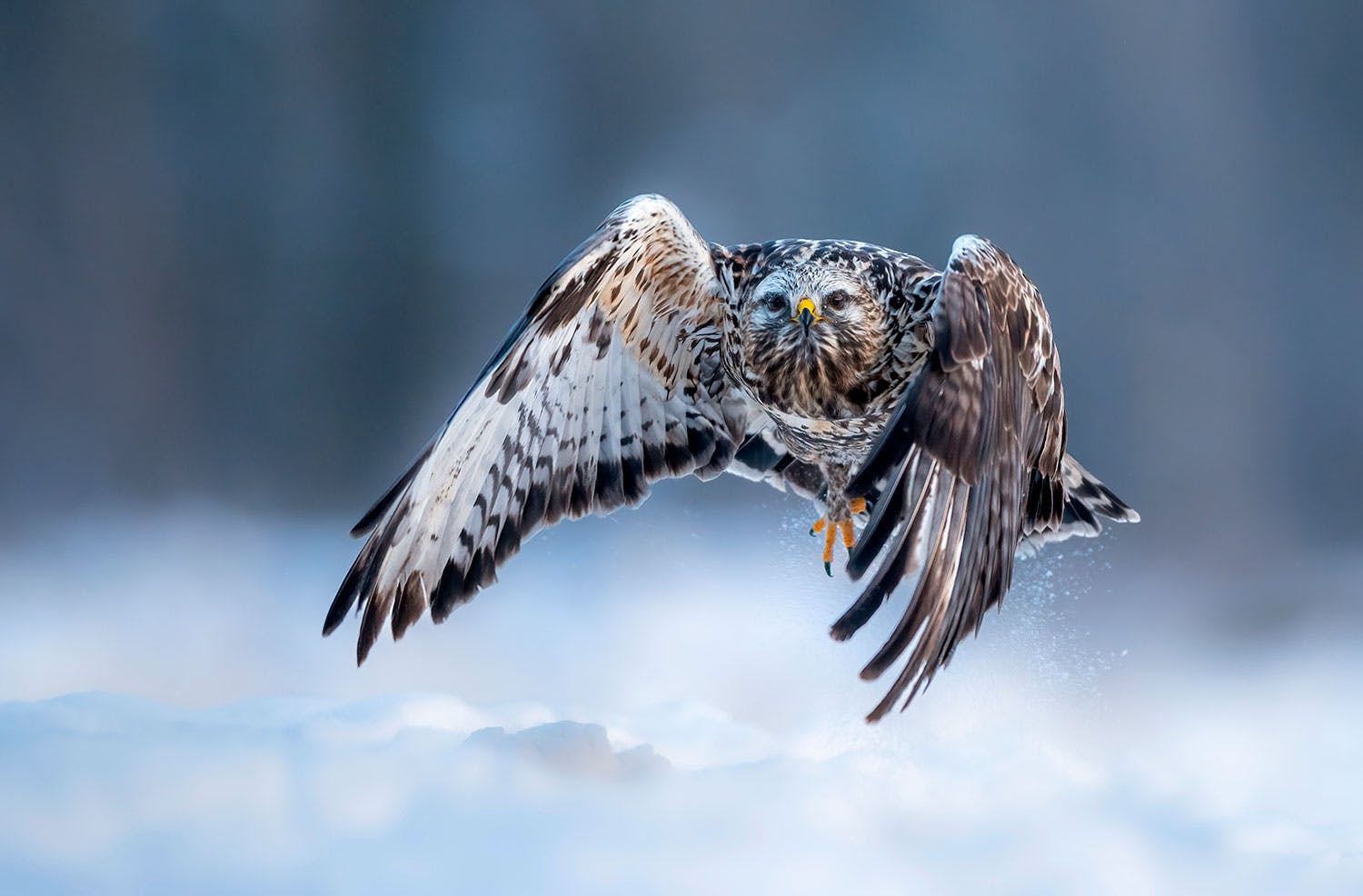 Talven niukka valo on haaste. Käytän automaattista ISOa ja säädän suljinajan itse, usein 1/2000 sekuntiin lentäville linnuille ja 1/30 sekuntiin aloillaan oleville linnuille.
