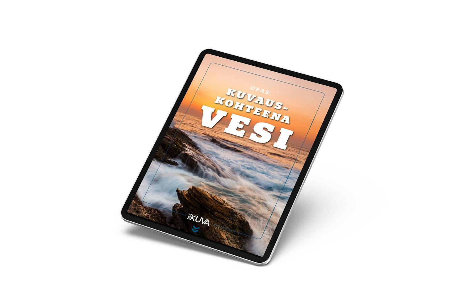 E-kirjassa kerromme, miten saat upeita maisemakuvia veden äärellä. Kirja sisältää 22 sivua, ja siinä neuvotaan muun muassa, miten saat parempia kuvia ja suojaat kuvausvälineitä kätevien varusteiden avulla veden äärellä ollessasi.