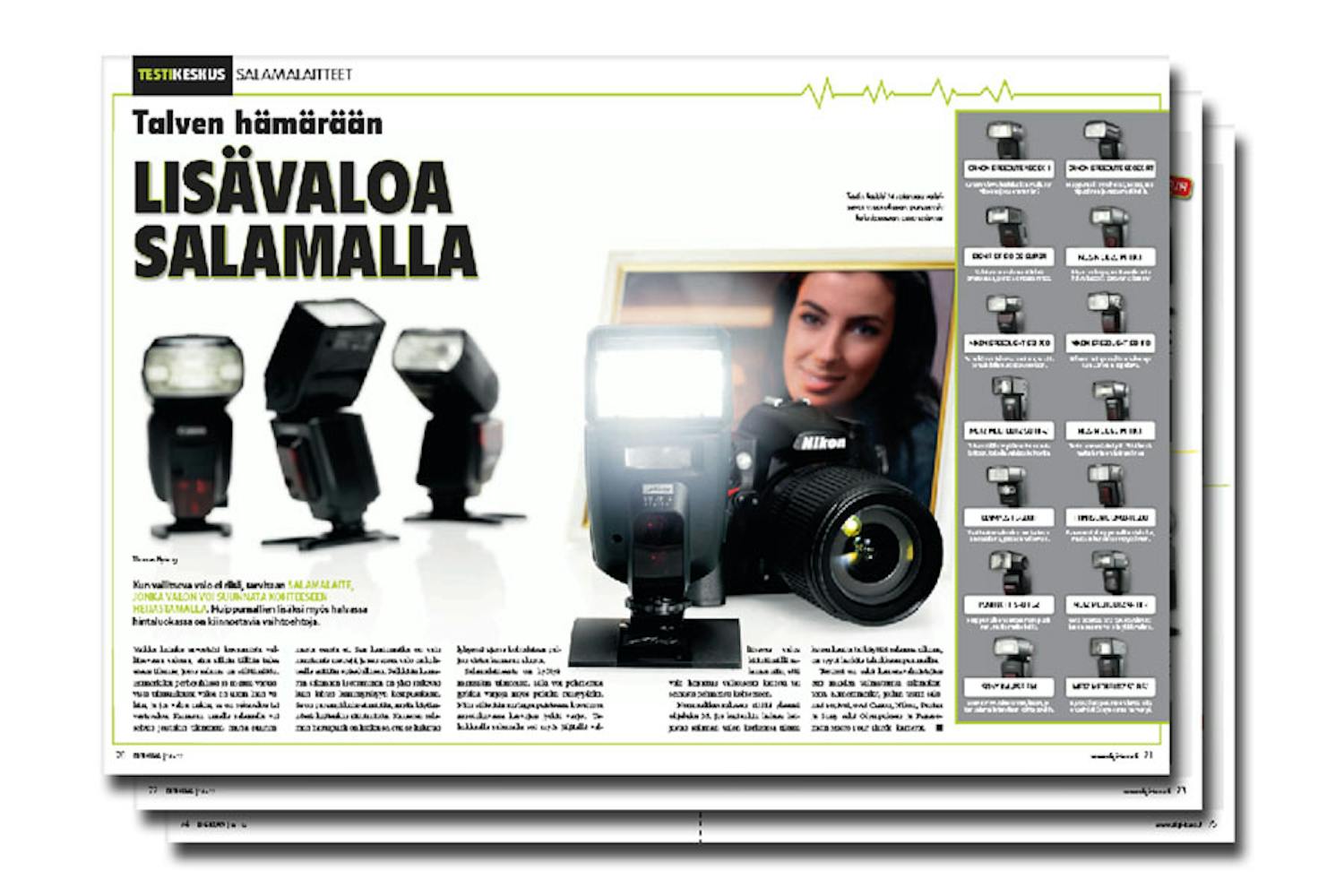 Testissä on sekä kameravalmistajien että muiden valmistamia salamalaitteita. Kameramerkit, joihin testin salamat sopivat, ovat Canon, Nikon, Pentax ja Sony sekä Olympuksen ja Panasonicin Micro Four Thirds -kamerat.