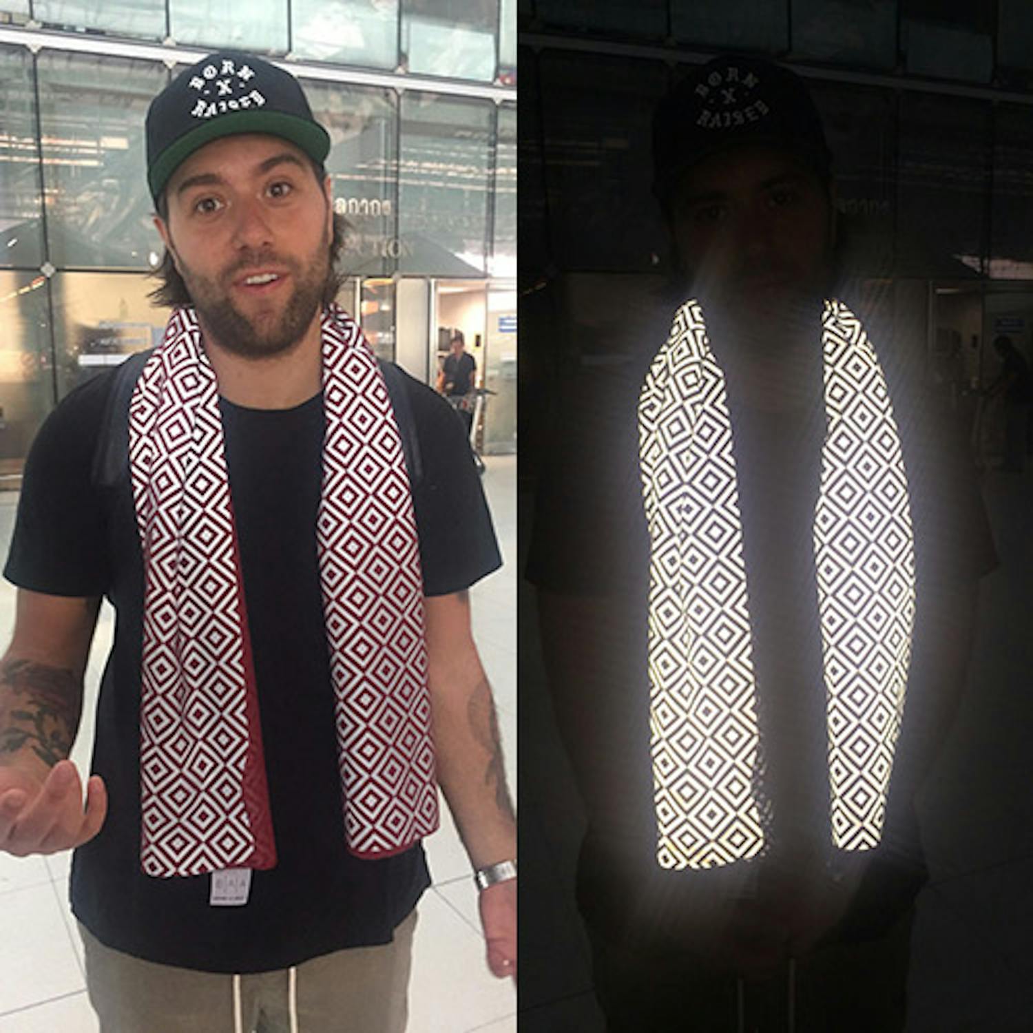 Saif Siddiqui sai ajatuksen huivista jo vuonna 2009, kun polkupyörän heijasti pilasi iloisen kuvan ystäväporukasta.