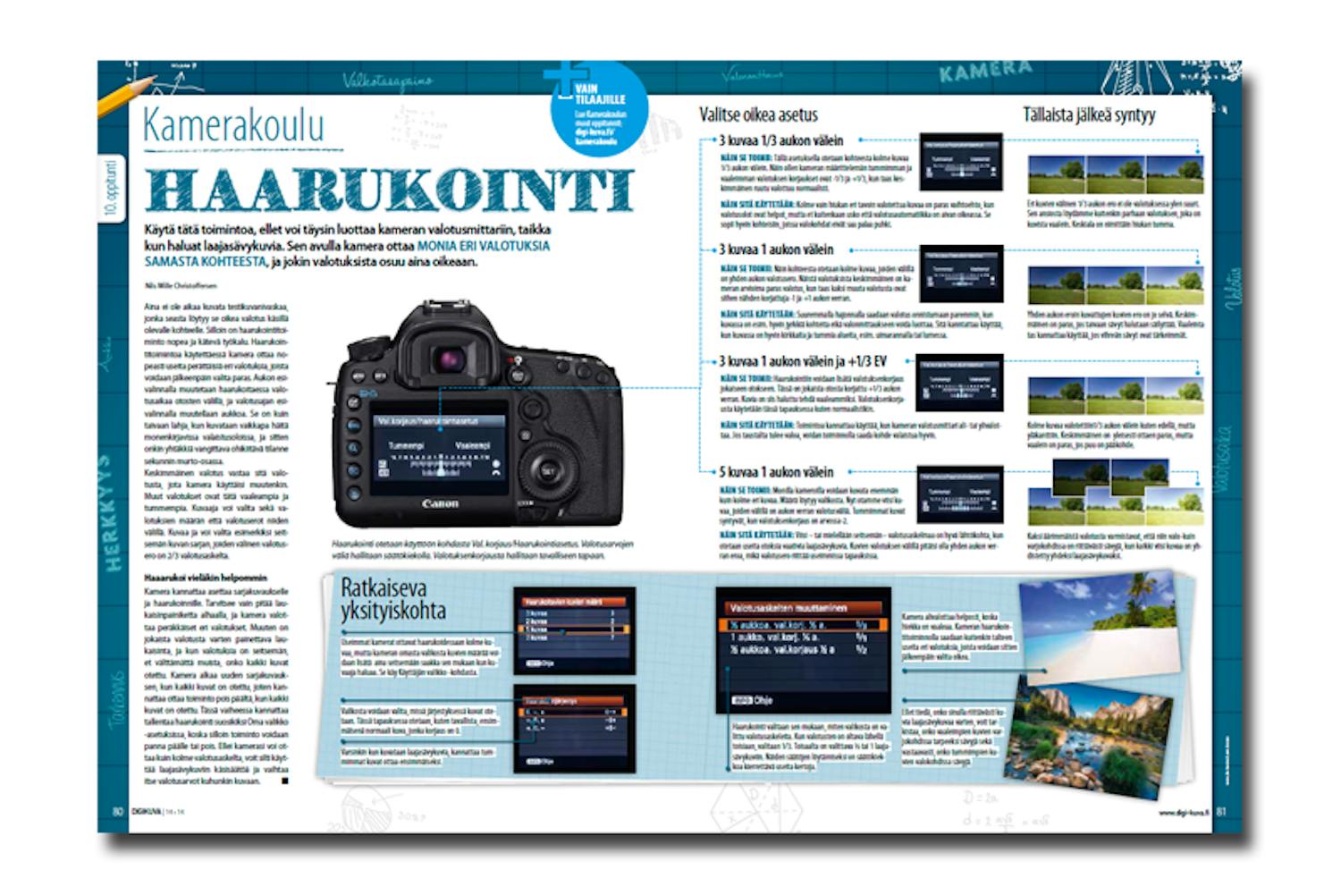 Aina ei ole aikaa kuvata testikuvanivaskaa, jonka seasta löytyy se oikea valotus käsillä olevalle kohteelle. Silloin on haarukointitoiminto nopea ja kätevä työkalu.