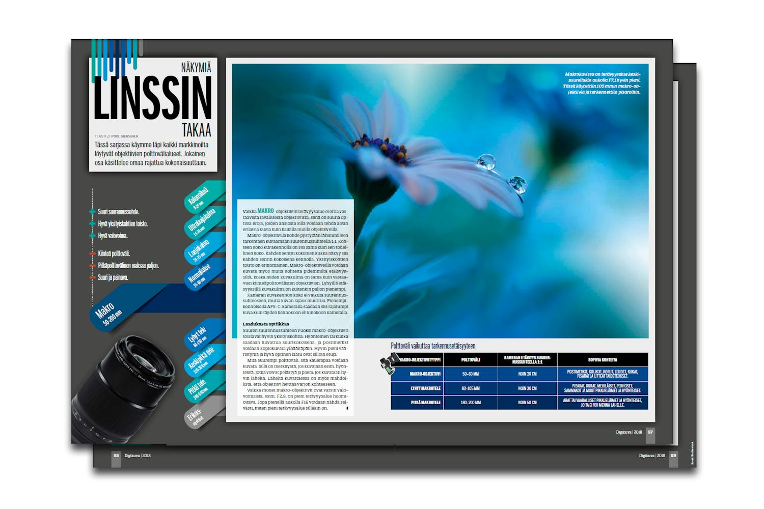 Digikuvan juttusarjassa nimeltä Näkymiä linssin takaa käydään läpi kaikki polttovälialueet pitkästä telestä kalansilmäobjektiiviin ja erikoisobjektiiveihin. Jokainen osa käsittelee yhtä objektiivityyppiä.
